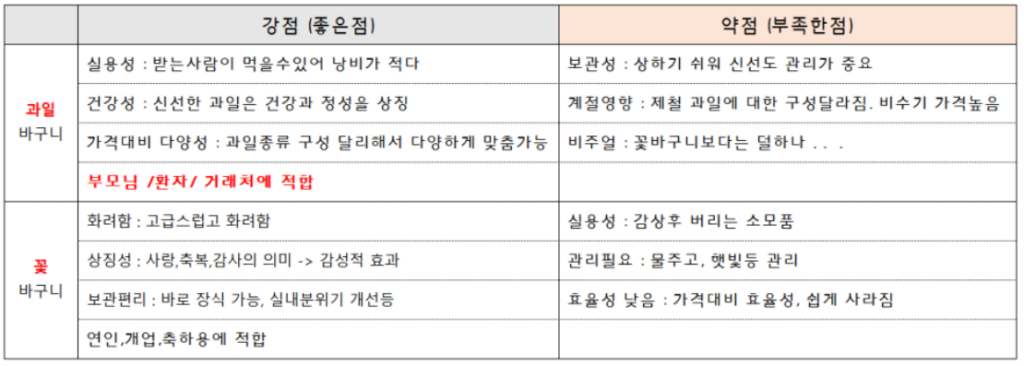 과연 과일바구니가 꽃바구니를 등가할까 생각도 해보면서 장단점을