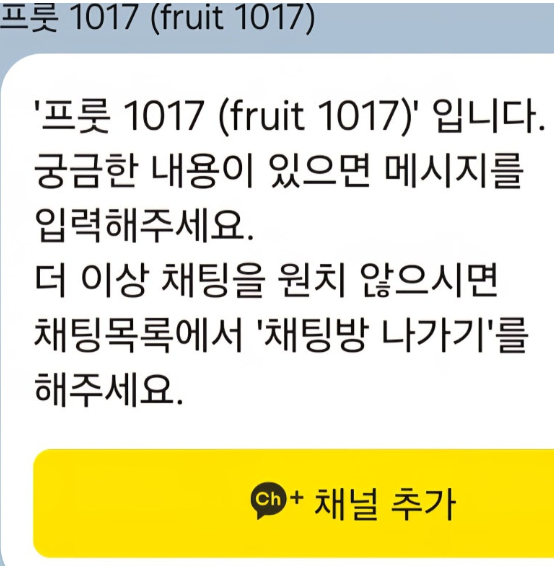 1. 카카오채널 프룻1017을 검색하면 바로 채널추가를 합니다 . 그렇게 해서 주문서에 나온 상품들을 클릭해서 ~~!! 물론 바로 질문도 가능하구요