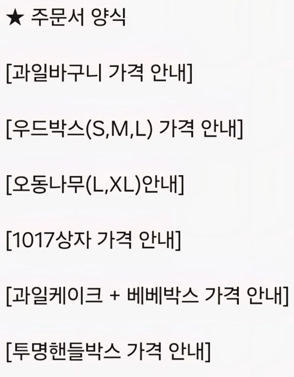2. ​과일 바구니에 따라서 그리고 내용에 따라서 다양한 상품이 있어 예산을 세운대로 구매하면금액,언제 ,어디로 자세한 설명을 들을수있습니다
