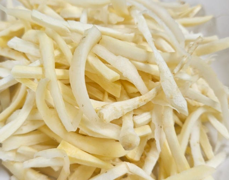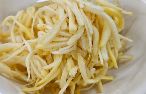 1. 도라지 껍질을 돌려깍기로 벗겨 0.3*0.3* 6cm 크기로 채를 썰어둔다