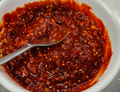 꼭 고추가루를 같이 넣어 사용한다 고추장 2 . 고추가루 1 비율로
