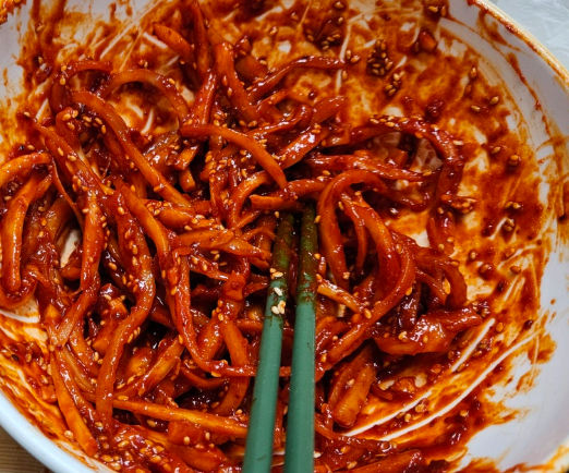 1. 초고추장, 고추가루, 식초, 설탕, 깨소금, 다진마늘, 다진파.