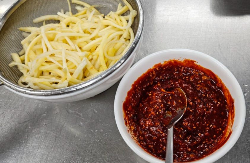 4. 씻어둔 도라지채를 물기를 제거하고 양념에 무친다