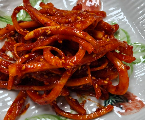 1. 통도라지 (찢은도라지) 또는 더덕 120g (같이 섞어 요리해도 됨), 다진마늘, 파약간, 식초, 설탕, 깨소금, 고추장 또는 초고추장