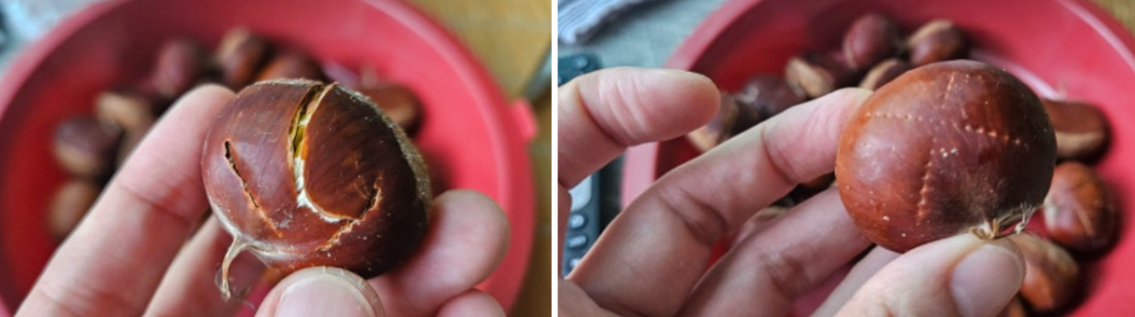 밤 칼집내는것은 있지만 이 칼집이 밤을 잘 까게 아니면 까이게