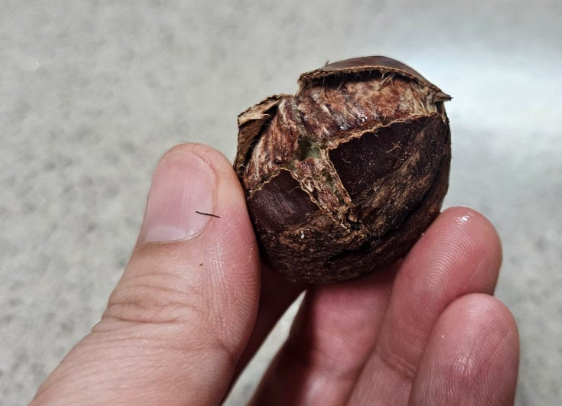 껍질을 여전히 칼로 깎아 밤을 파먹고 있습니다