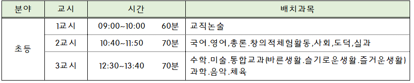 임용 시험 과목 및 초등 임용 시험 시간 2025년